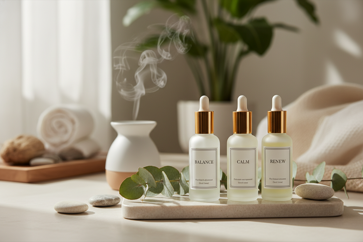 Expérience sensorielle :"Créez votre sanctuaire de sérénité. Nos diffuseurs et huiles transforment votre espace en havre de paix et de relaxation."